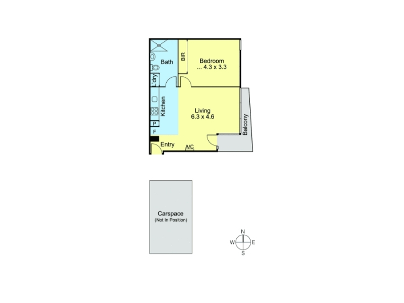 The apartmentu2019s features include an open-plan living area with floor-to-ceiling windows leading to a spacious, undercover balcony, perfect for relaxing or entertaining. The bedroom comes with a mirrored built-in robe, and the property includes a secure car space, reverse cycle heating/cooling in the living zone, and intercom entry for added security.