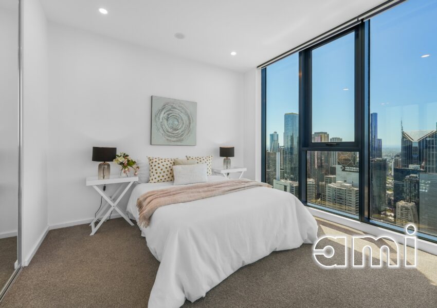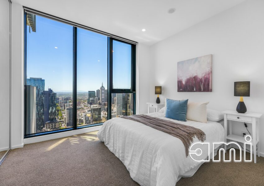 Soaring high above the Melbourne CBD on the 51st floor of the prestigious Melbourne Grand, this exceptional 3-bedroom, 2-bathroom apartment with secure car parking delivers an outstanding balance of lifestyle comfort and investment appeal. Showcasing a prized east and south-facing orientation and the rare advantage of two separate balconies, the home captures breathtaking city and bay views from multiple vantage points.